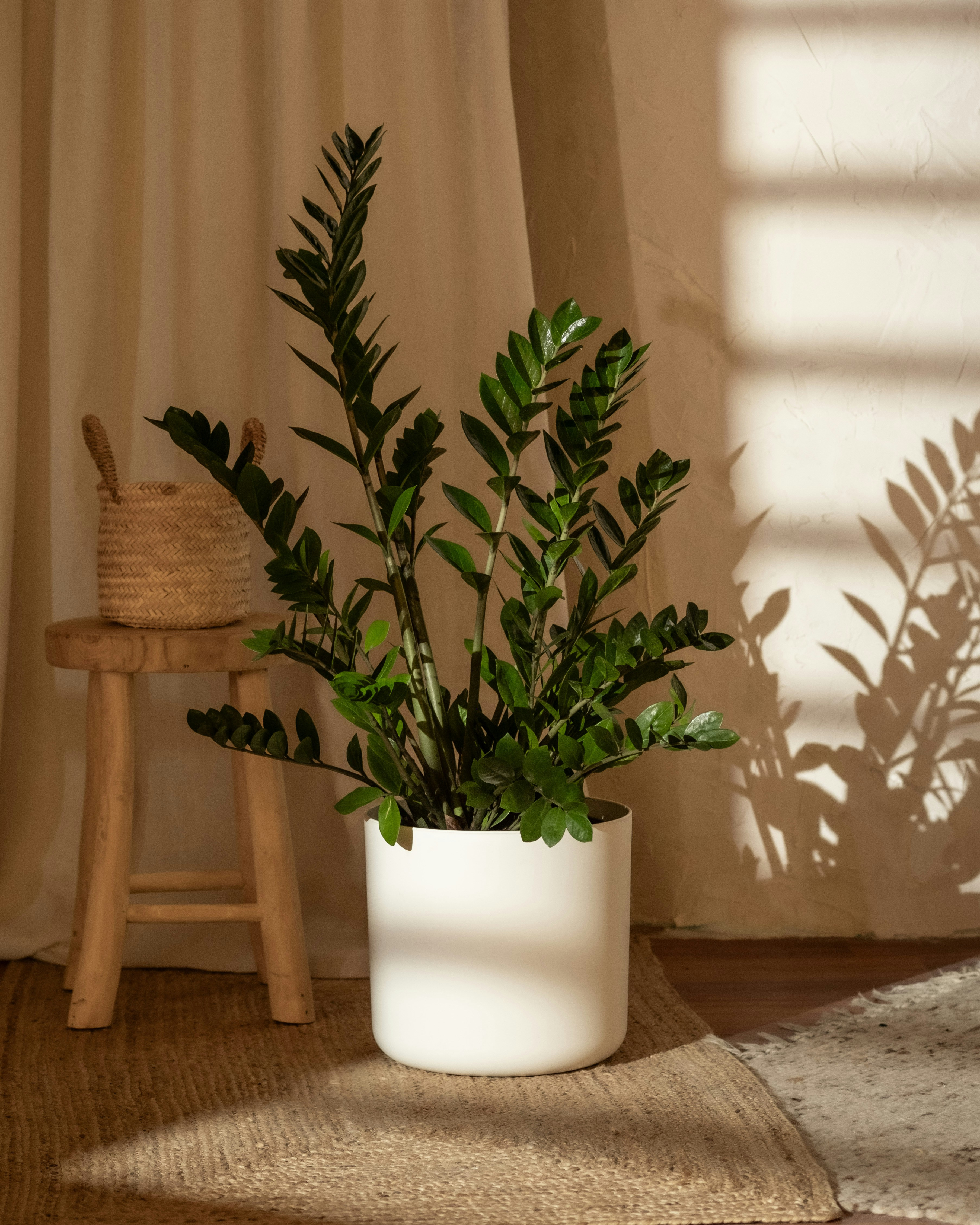 The ZZ Plant (Zamioculcas zamiifolia), also known as the Zanzibar Gem, is a tough and resilient indoor plant celebrated for its thick, glossy, dark green leaves and elegant, upright growth. Known for its adaptability, the ZZ Plant thrives in a wide range of indoor environments and requires minimal care, making it an ideal choice for busy plant owners and low-light spaces. With its unique, sculptural look, the ZZ Plant brings a modern touch of greenery to any home or office.